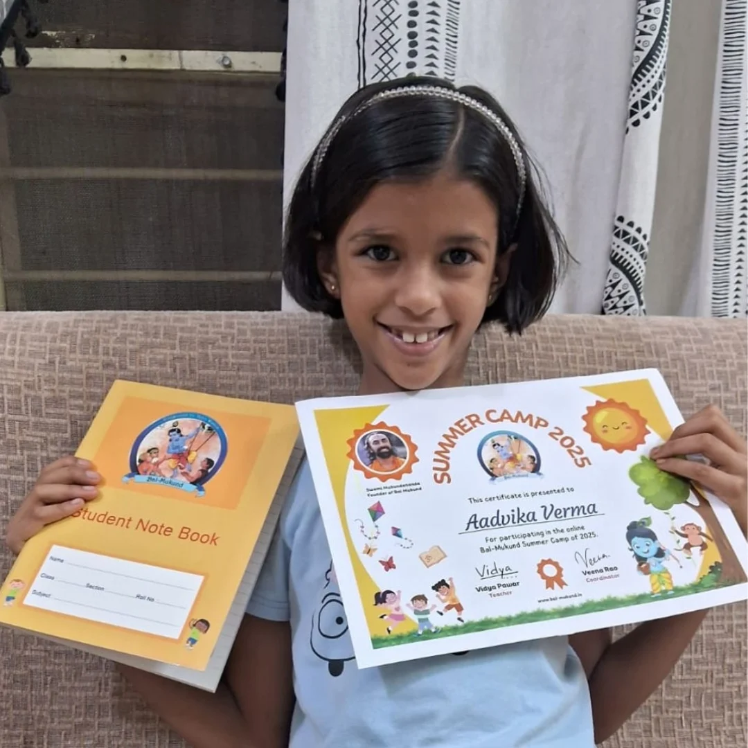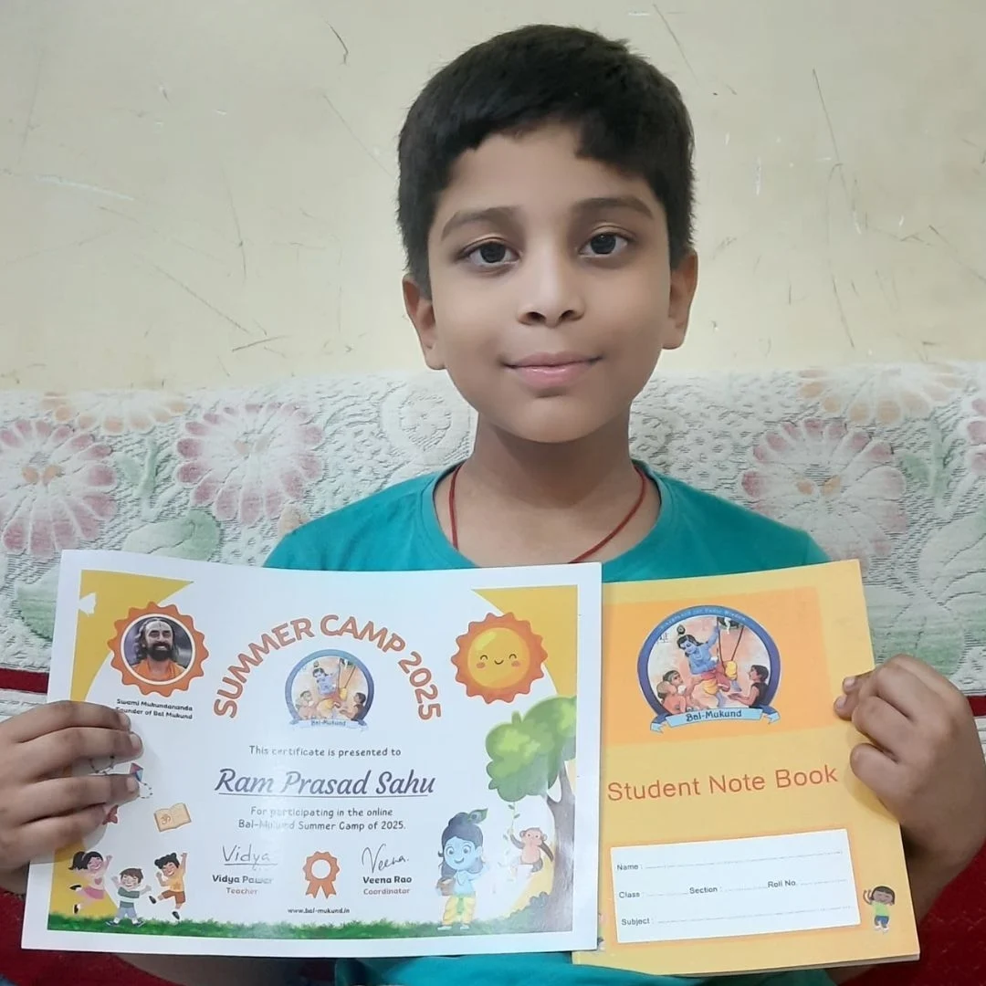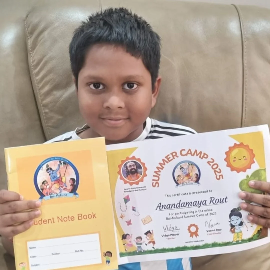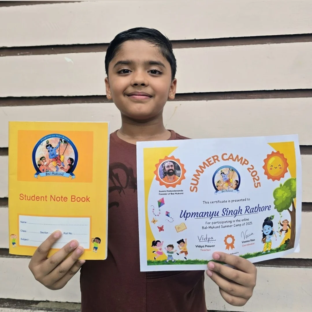 At our vibrant Bal-Mukund Summer Camp, kids dive into the magical world of Vedic knowledge, ancient scriptures, and India’s colorful culture, made simple and exciting through the inspiring teachings of Swami Mukundananda.